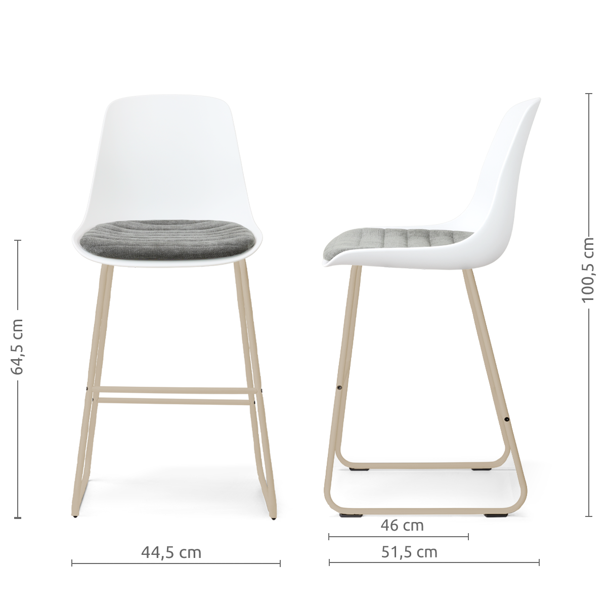 Nino-Liv barkruk wit met zeegrijs zitkussen - beige onderstel - 65 cm