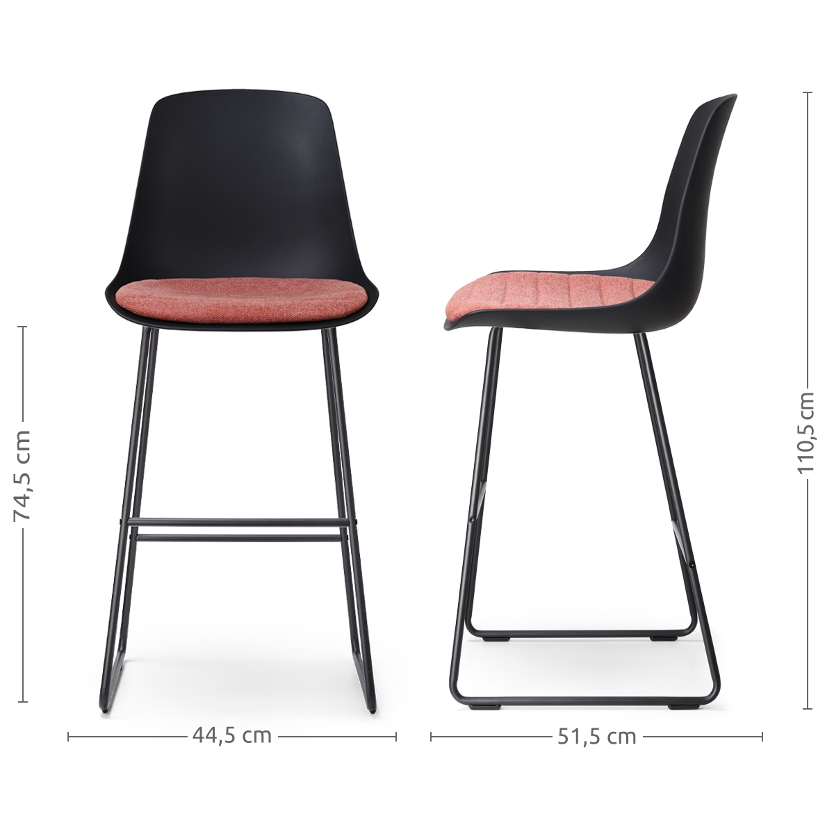 Nino-Liv barkruk zwart met terracotta rood zitkussen - zwart onderstel - 75 cm