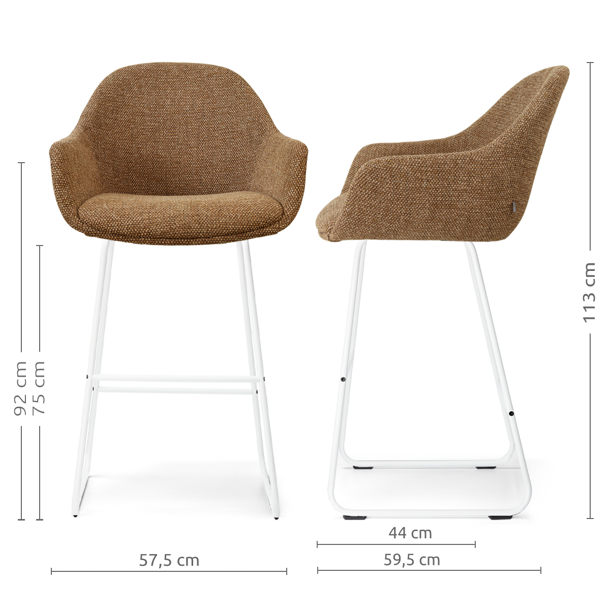 De Nino-Mae barkruk is niet alleen een lust voor het oog, maar ook een genot om op te zitten. Met deze barkruk zit je net zo lekker aan de bar als aan een gewone eettafel. De barkruk heeft een comfortabele kuipzitting met armleuningen en het onderstel is voorzien van een voetsteun. Hierdoor worden je armen en rug goed ondersteunt zodat je urenlang aan de bar kan hangen. De stoffen bekleding zorgt ervoor dat je extra zacht zit. Het moderne metalen onderstel biedt stabiliteit en geeft de barkruk een moderne uitstraling. Of je nu gaat voor een industriële look of een eigentijdse stijl in huis, de Nino-Mae barkruk tilt jouw interieur naar een hoger niveau. Naast luxe stof is deze barkruk ook in bouclé stof verkrijgbaar. Dit materiaal maakt de barkruk extra sfeervol en is ook nog eens erg slijtvast en onderhoudsvriendelijk. Met deze barkruk van Nolon zit je dus zeker weten goed! Voordelen en tips