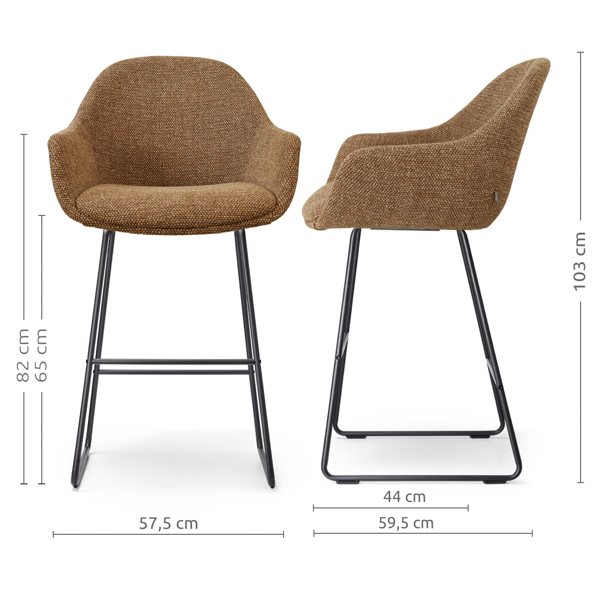 De Nino-Mae stoffen kookeiland met armleuningen van Nolon combineert comfort met design, en is perfect geschikt voor gebruik aan een kookeiland. Deze barkruk met rugleuning en armleuningen biedt optimaal zitcomfort dankzij de zachte, gevoerde zitting. De beige gemêleerde stof zorgt voor een warme uitstraling, terwijl de armleuningen een ontspannen zithouding bevorderen, ideaal voor ontbijt, diner, of gezellige borrelmomenten aan het kookeiland. Met een zithoogte van 65 cm is de Nino-Mae barkruk perfect voor een kookeiland, waar een iets lagere zit vaak gewenst is. Het zwarte metalen onderstel biedt niet alleen stevigheid, maar geeft de barkruk ook een eigentijdse, industriële uitstraling. Hierdoor past deze beige barkruk naadloos in verschillende woonstijlen, van Scandinavisch tot modern industrieel. Onderhoud en advies