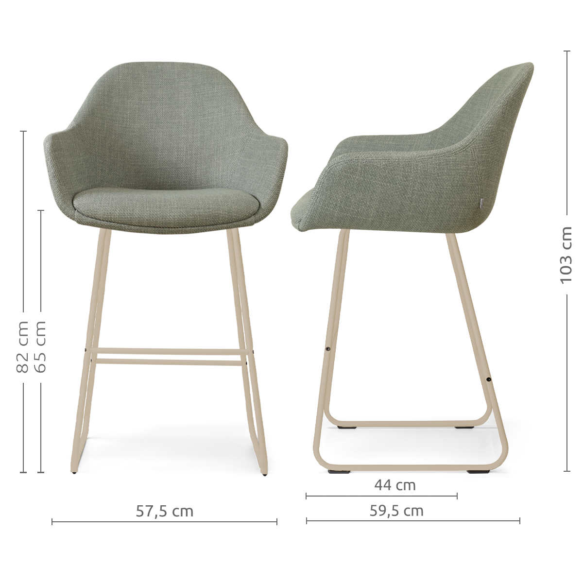 Nino-Mae barkruk saliegroen - beige onderstel - 65 cm