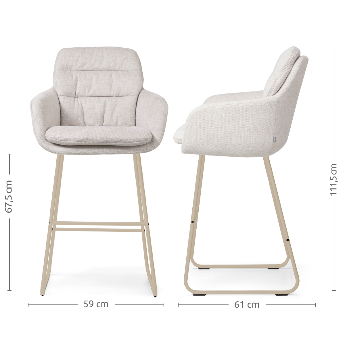 Het beige metalen Nino onderstel vormt een solide basis en geeft de barkruk een moderne, luchtige uitstraling. Dankzij de kruisverbinding tussen de poten staat de barkruk stevig en stabiel op verschillende ondergronden.