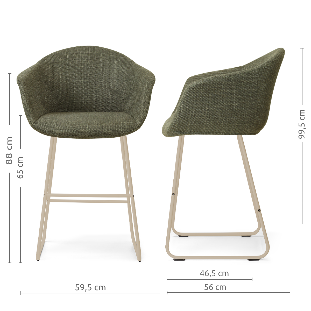Nino-Otis barkruk forestgroen - beige onderstel - 65 cm
