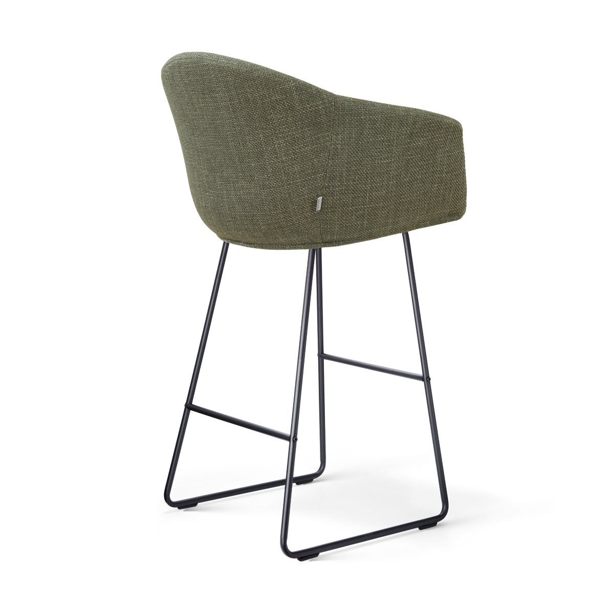 Diep forestgroen met een modern zwart accent. De Nino-Otis barkruk in forestgroen met zwarte poten combineert elegantie met comfort. De zachte stoffering, oplopende armleuningen en stevige voetsteun zorgen voor een ergonomische zit, terwijl het zwarte frame een moderne, stoere touch geeft aan je keuken of bar. Onderhoudsadvies voor een lange levensduur
