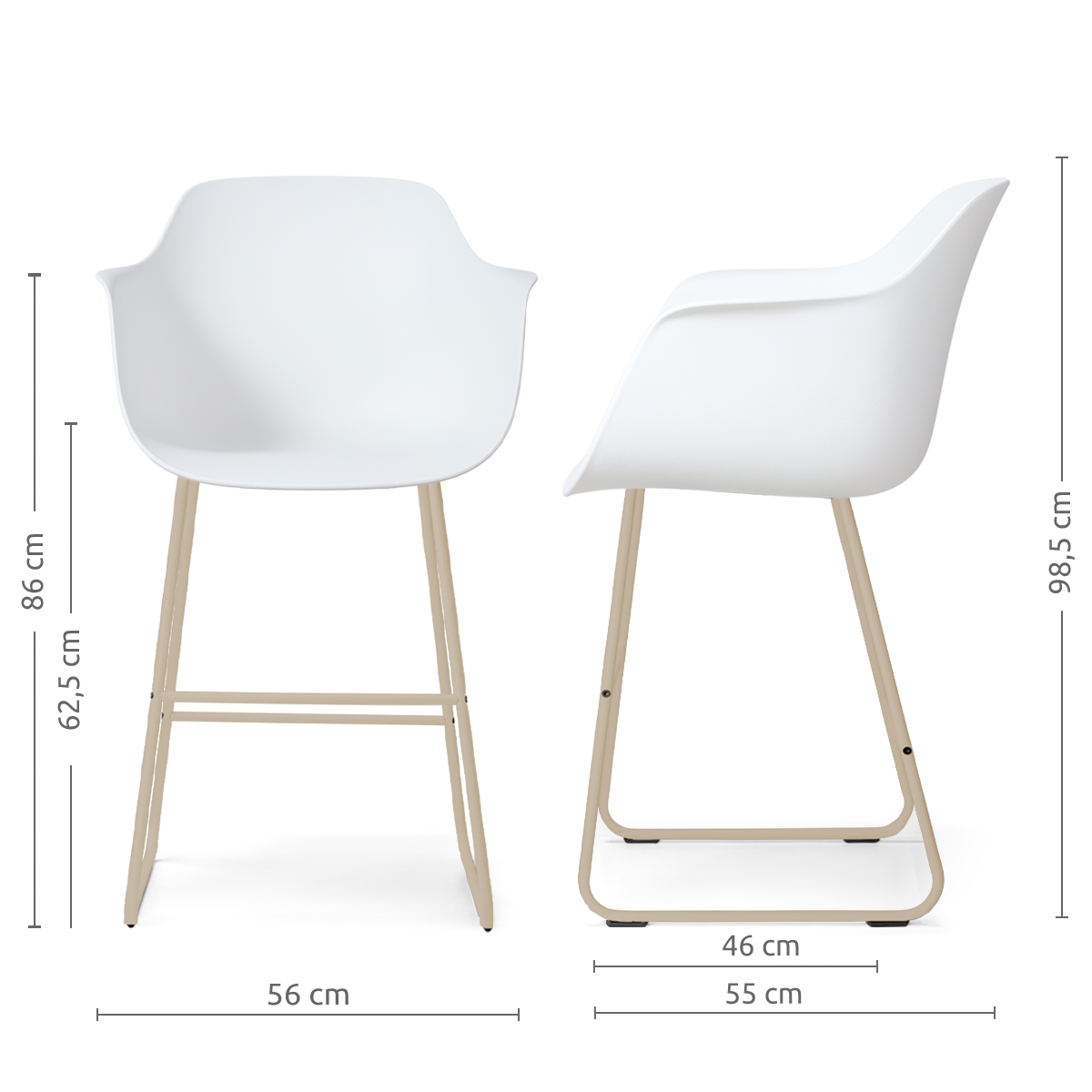 Met een zithoogte van 65 cm is deze barkruk ideaal voor gebruik aan een kookeiland of lagere bartafel. Dankzij het minimalistische ontwerp past deze kunststof barkruk met armleuningen perfect in een Scandinavisch, modern of industrieel interieur. Plaats meerdere barkrukken naast elkaar voor een strak en stijlvol geheel in de keuken.