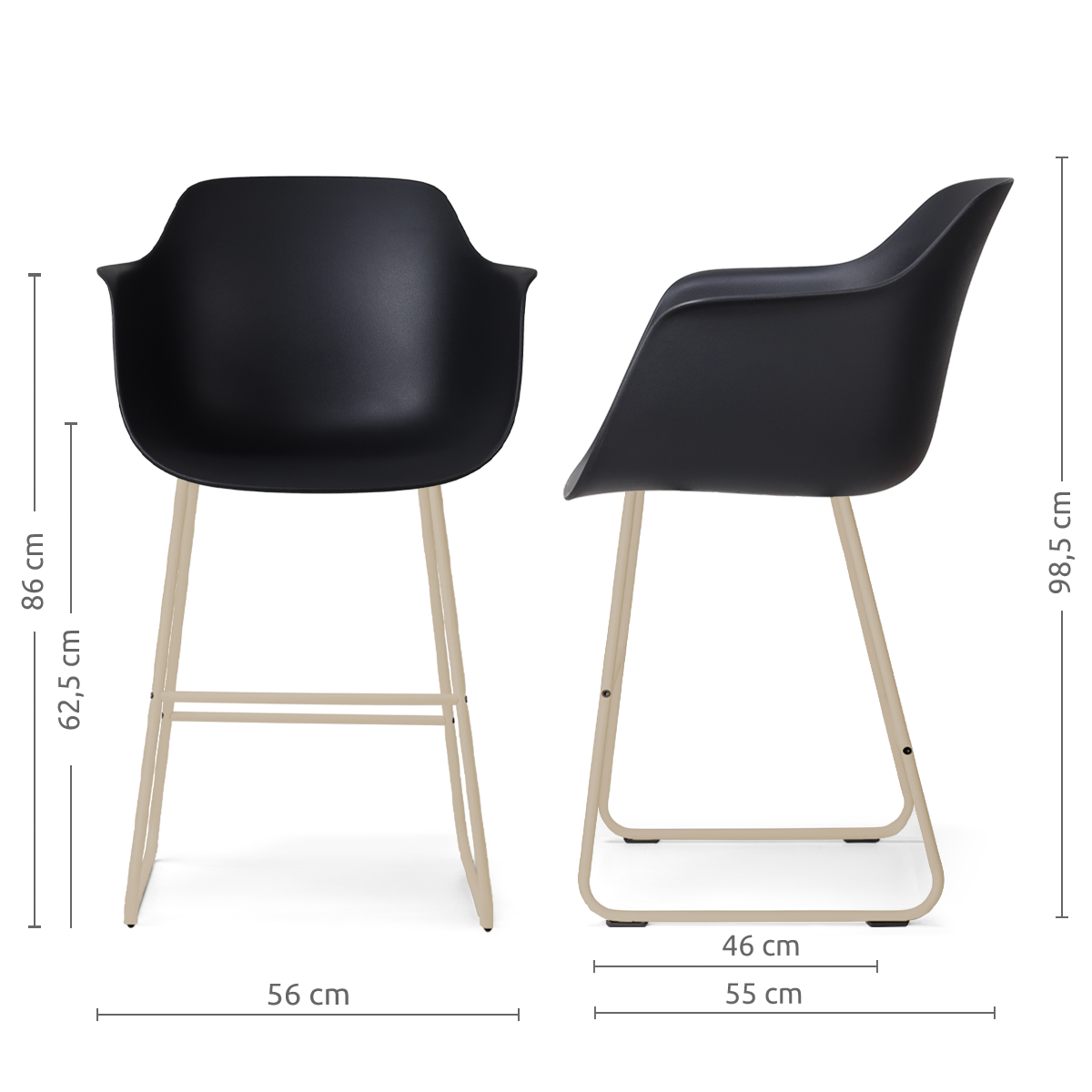 Met een zithoogte van 65 cm is deze barkruk ideaal voor gebruik aan een kookeiland of lagere bartafel. Dankzij het minimalistische ontwerp past deze kunststof barkruk met armleuningen perfect in een Scandinavisch, modern of industrieel interieur. Plaats meerdere barkrukken naast elkaar voor een strak en stijlvol geheel in de keuken.