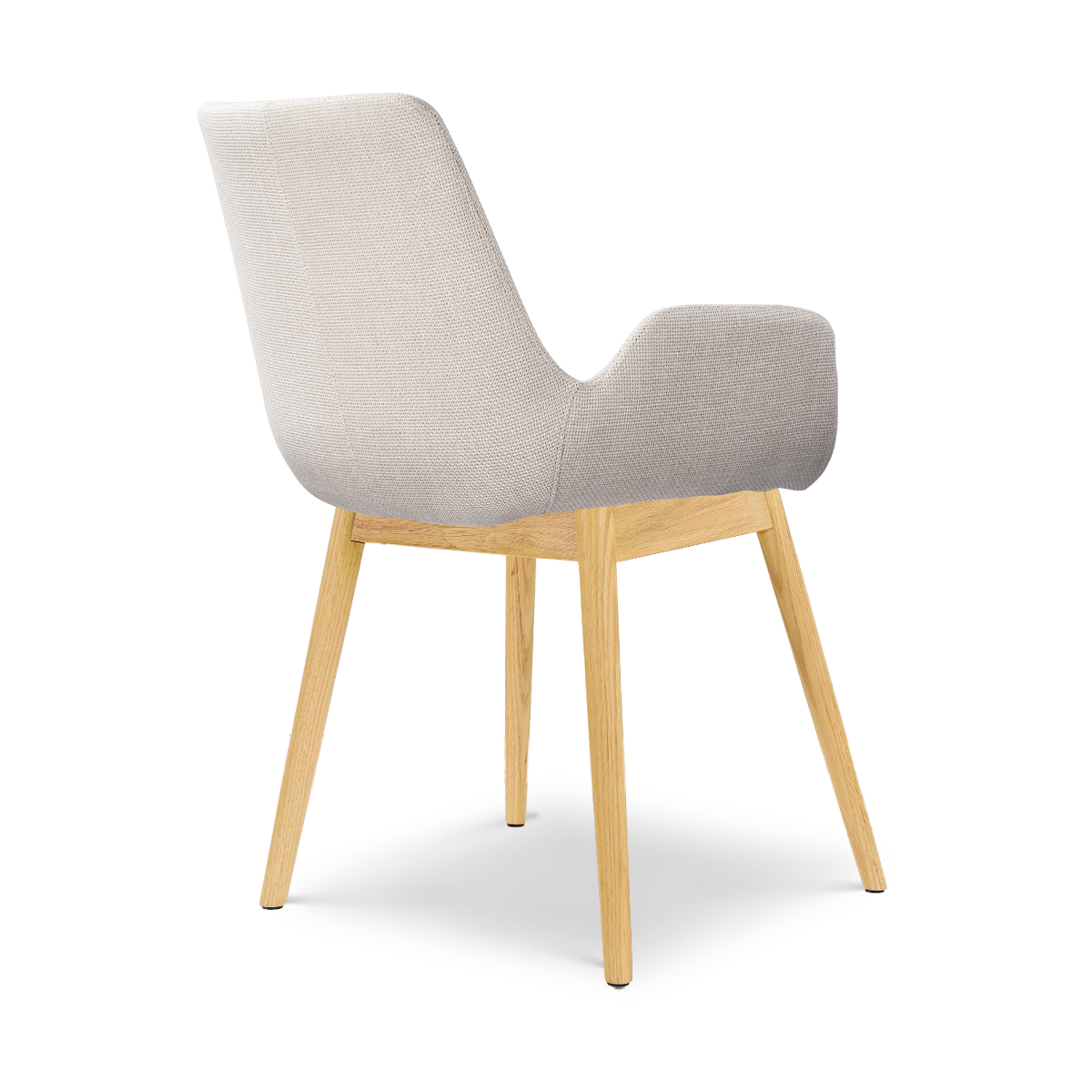 De Nio-Eef eetkamerstoel met houten naturel onderstel combineert comfort met een lichte, natuurlijke uitstraling aan de eettafel. De hoogwaardige stoffen zitting met armleuningen biedt een comfortabele en rustige zit, terwijl het naturel houten onderstel zorgt voor stabiliteit en een frisse, natuurlijke look. De ronde vormen en het tijdloze ontwerp maken deze stoel een mooie toevoeging aan een Scandinavisch, modern of Japandi interieur — perfect voor lange avonden tafelen. Tips & advies