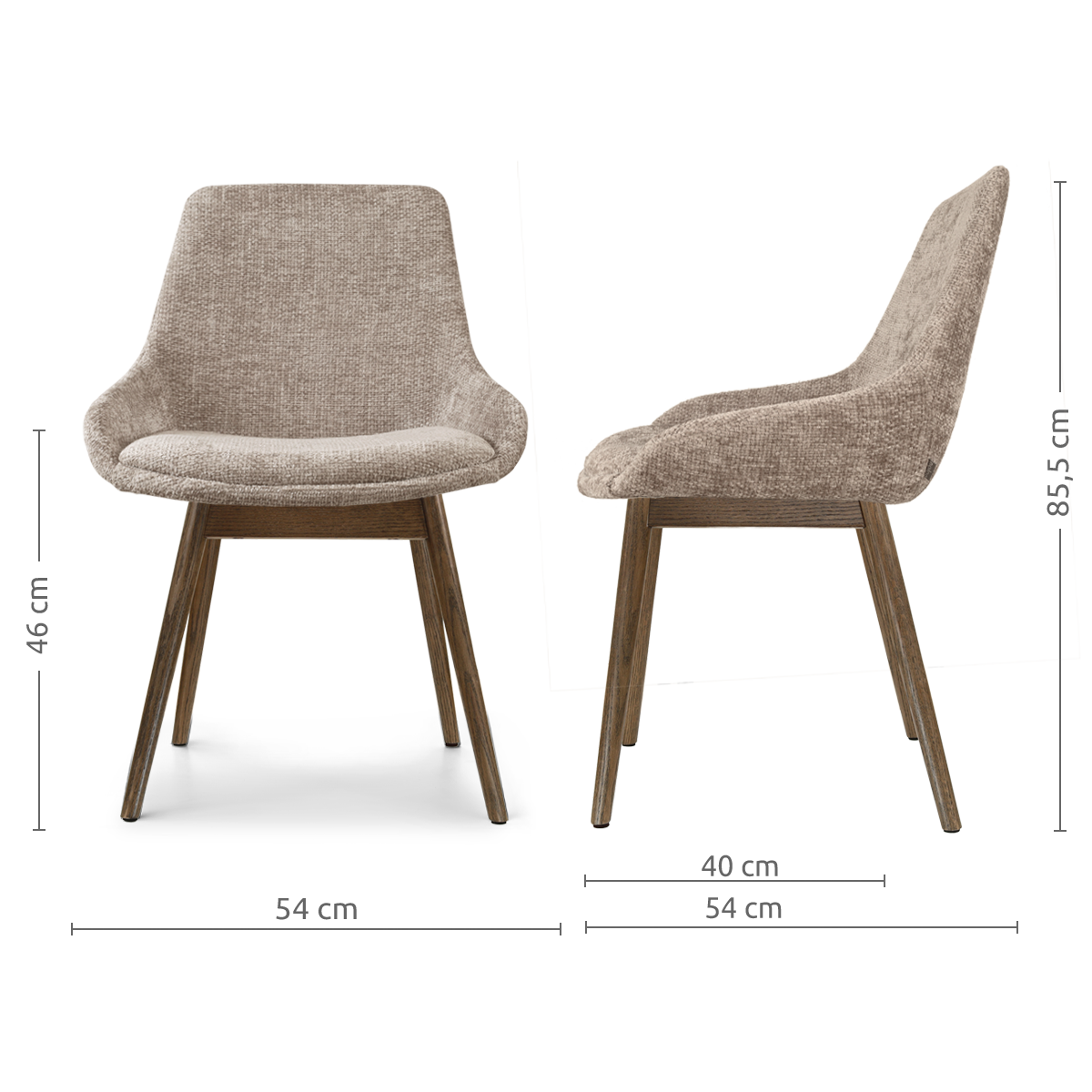 De Nio-Isa eetkamerstoel met houten walnoten onderstel zorgt voor een comfortabele zitplek met een rustige, natuurlijke uitstraling. De hoogwaardige stoffen kuipzitting zonder armleuningen geeft een warme en rustige basis aan tafel, terwijl het houten onderstel zorgt voor stabiliteit en de natuurlijke uitstraling van de stoel versterkt. Tips & advies