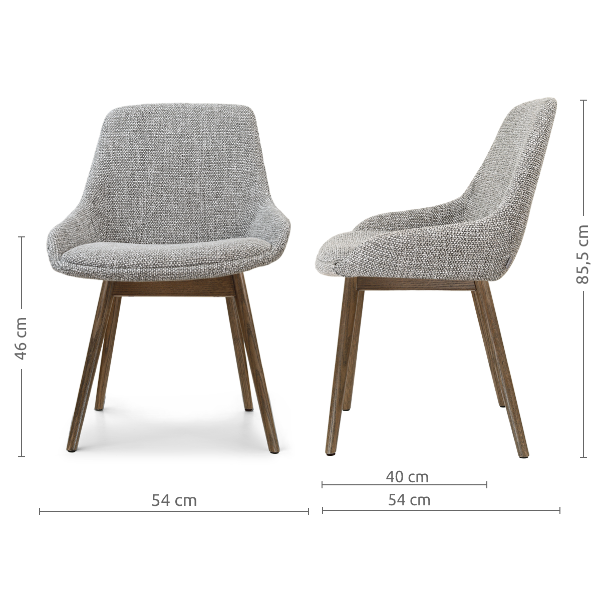 Nio-Isa eetkamerstoel grijs blend - walnoot houten onderstel