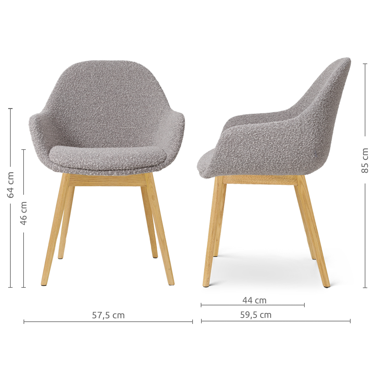 De Nio-Mae eetkamerstoel met eiken houten onderstel brengt een lichte, natuurlijke uitstraling en comfortabel zitgemak samen aan je eettafel. De hoogwaardige stoffen zitting met armleuningen zorgt voor een warme en rustige sfeer aan tafel. Het eiken houten onderstel geeft de stoel een stabiele basis en laat de natuurlijke uitstraling mooi naar voren komen. Dankzij de zachte vormen sluit deze stoel mooi aan bij een Scandinavisch of Japandi interieur. Een fijne plek voor lange diners en goede gesprekken aan tafel. Tips & adviesMet een paar eenvoudige tips blijft je stoel mooi en prettig in gebruik: