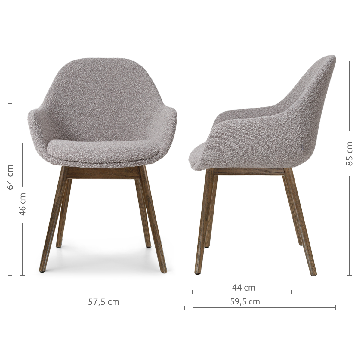 Nio-Mae eetkamerstoel bouclé taupe - walnoot houten onderstel