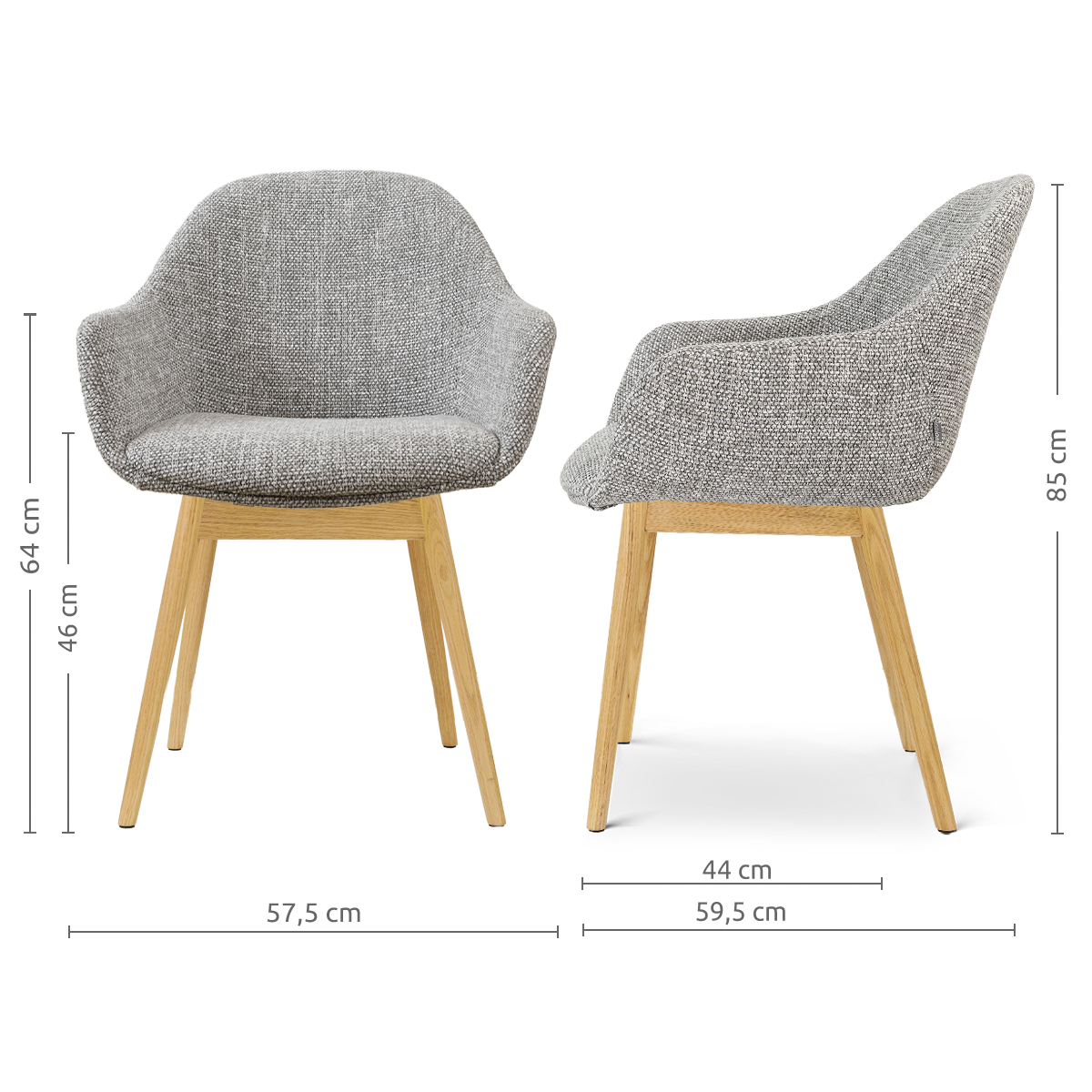De Nio-Mae eetkamerstoel met eiken houten onderstel brengt een lichte, natuurlijke uitstraling en comfortabel zitgemak samen aan je eettafel. De hoogwaardige stoffen zitting met armleuningen zorgt voor een warme en rustige sfeer aan tafel. Het eiken houten onderstel geeft de stoel een stabiele basis en laat de natuurlijke uitstraling mooi naar voren komen. Dankzij de zachte vormen sluit deze stoel mooi aan bij een Scandinavisch of Japandi interieur. Een fijne plek voor lange diners en goede gesprekken aan tafel. Tips & adviesMet een paar eenvoudige tips blijft je stoel mooi en prettig in gebruik: