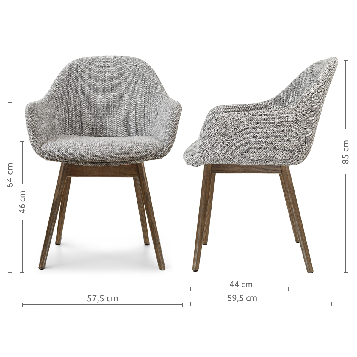 Nio-Mae eetkamerstoel grijs blend - walnoot houten onderstel