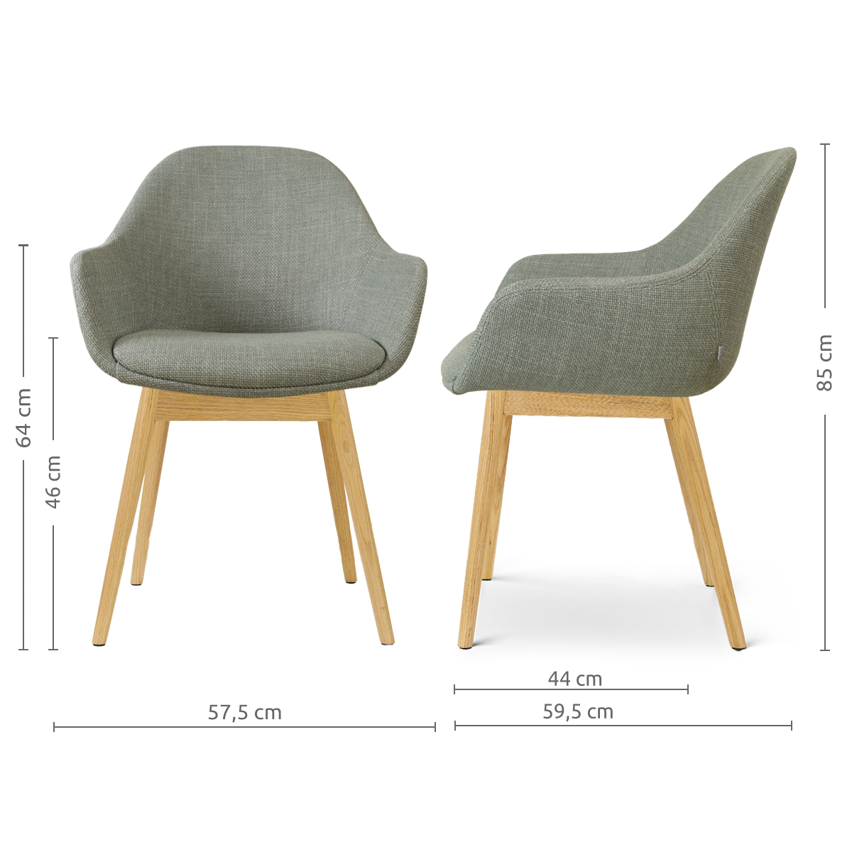 De Nio-Mae eetkamerstoel met eiken houten onderstel brengt een lichte, natuurlijke uitstraling en comfortabel zitgemak samen aan je eettafel. De hoogwaardige stoffen zitting met armleuningen zorgt voor een warme en rustige sfeer aan tafel. Het eiken houten onderstel geeft de stoel een stabiele basis en laat de natuurlijke uitstraling mooi naar voren komen. Dankzij de zachte vormen sluit deze stoel mooi aan bij een Scandinavisch of Japandi interieur. Een fijne plek voor lange diners en goede gesprekken aan tafel. Tips & adviesMet een paar eenvoudige tips blijft je stoel mooi en prettig in gebruik: