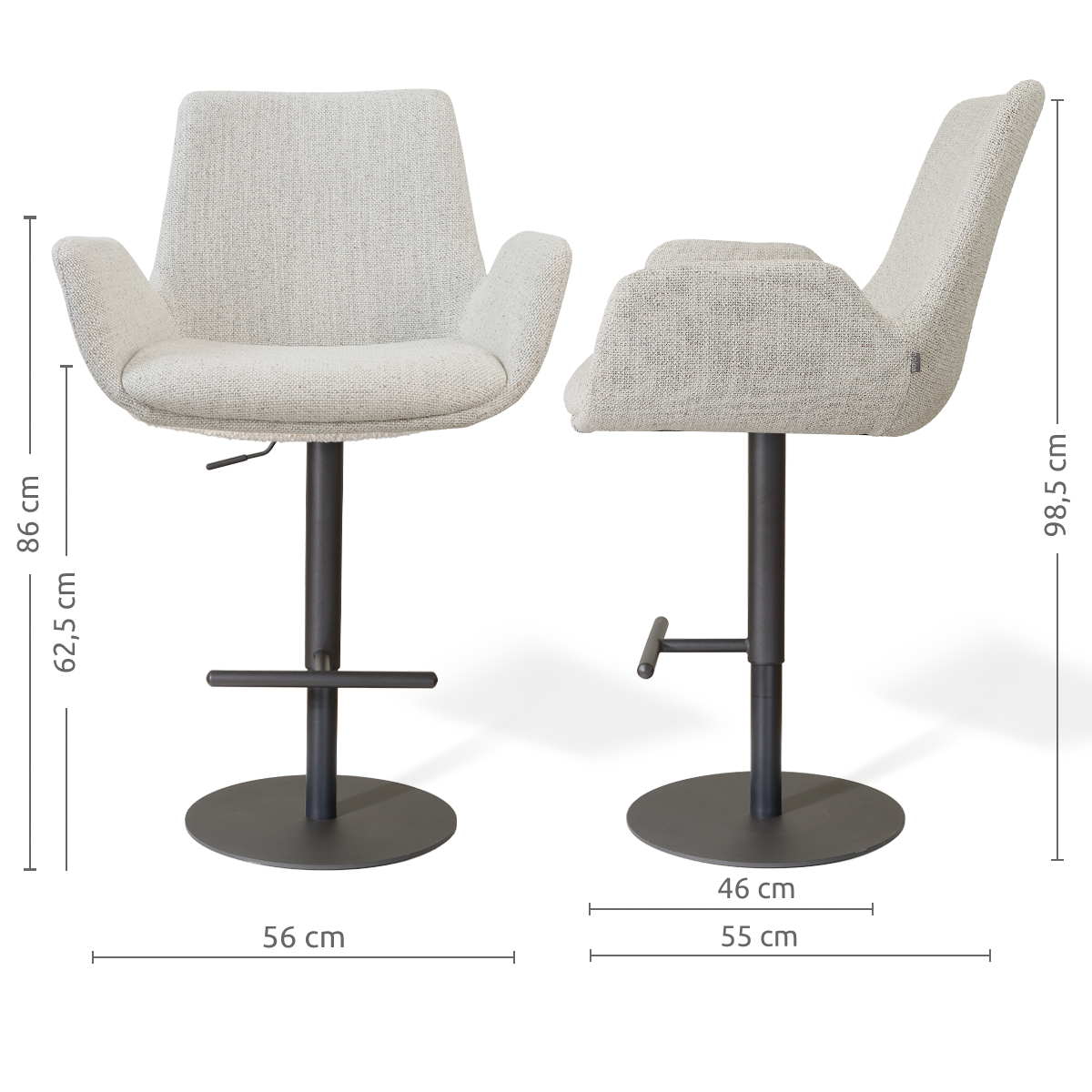 De Niva-Eef barkruk met mat zwart tulp onderstel biedt een comfortabele zit en een moderne uitstraling. De zitting met armleuningen geeft extra ondersteuning, terwijl de verstelbare zithoogte zorgt voor flexibiliteit aan elk kookeiland. Het tulp onderstel houdt de ruimte open en overzichtelijk en de draaifunctie maakt het gebruik extra praktisch. De ronde vormen zorgen voor een rustige en stijlvolle uitstraling. Tips & adviesMet een paar eenvoudige tips blijft je stoel mooi en prettig in gebruik: