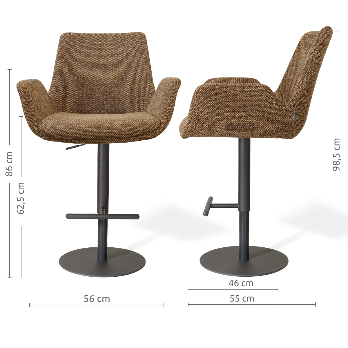 Niva-Eef draaibare tulp barkruk bruin blend - verstelbaar - mat zwart onderstel