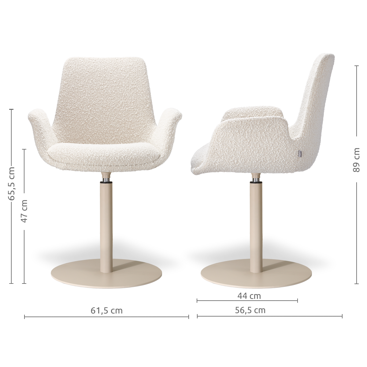 Niva-Eef draaibare tulp eetkamerstoel bouclé beige - beige onderstel