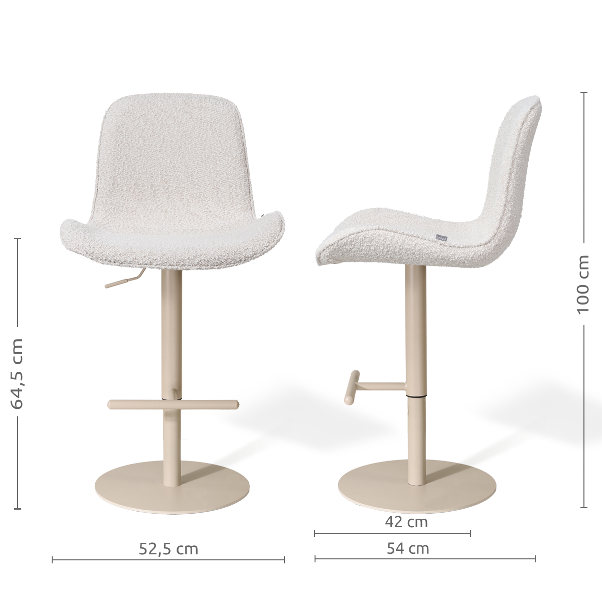 Niva-Fé draaibare tulp barkruk bouclé beige - verstelbaar - beige onderstel