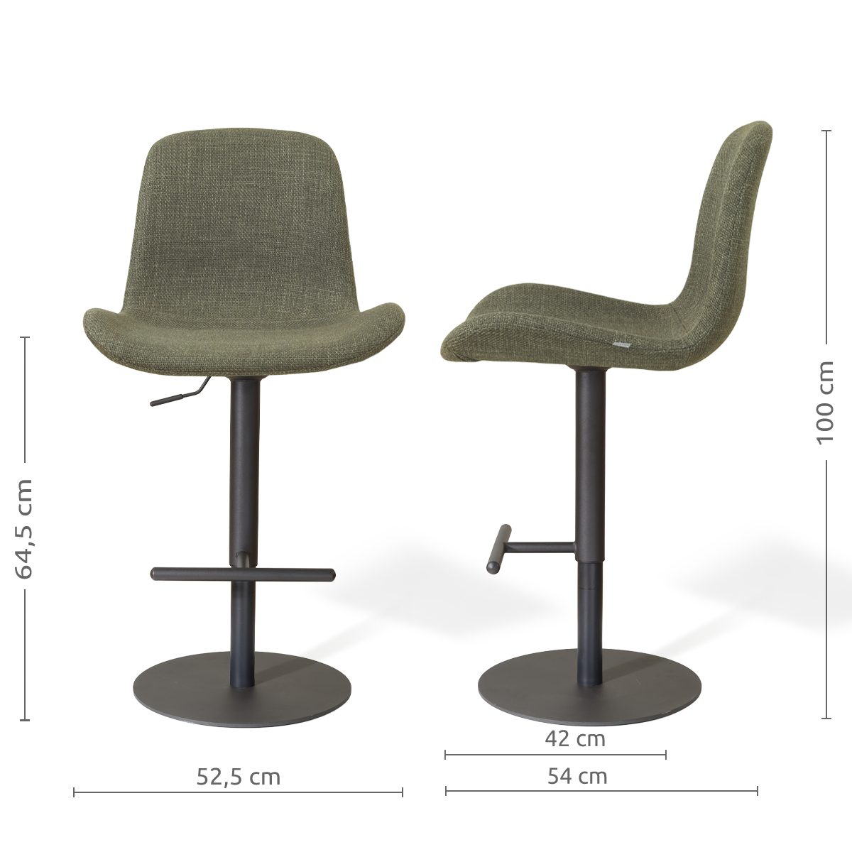 Niva-Fé draaibare tulp barkruk forestgroen - verstelbaar - mat zwart onderstel