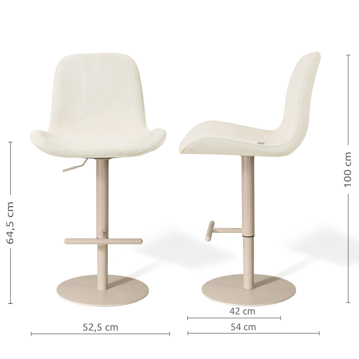 Niva-Fé draaibare tulp barkruk rib beige - verstelbaar - beige onderstel