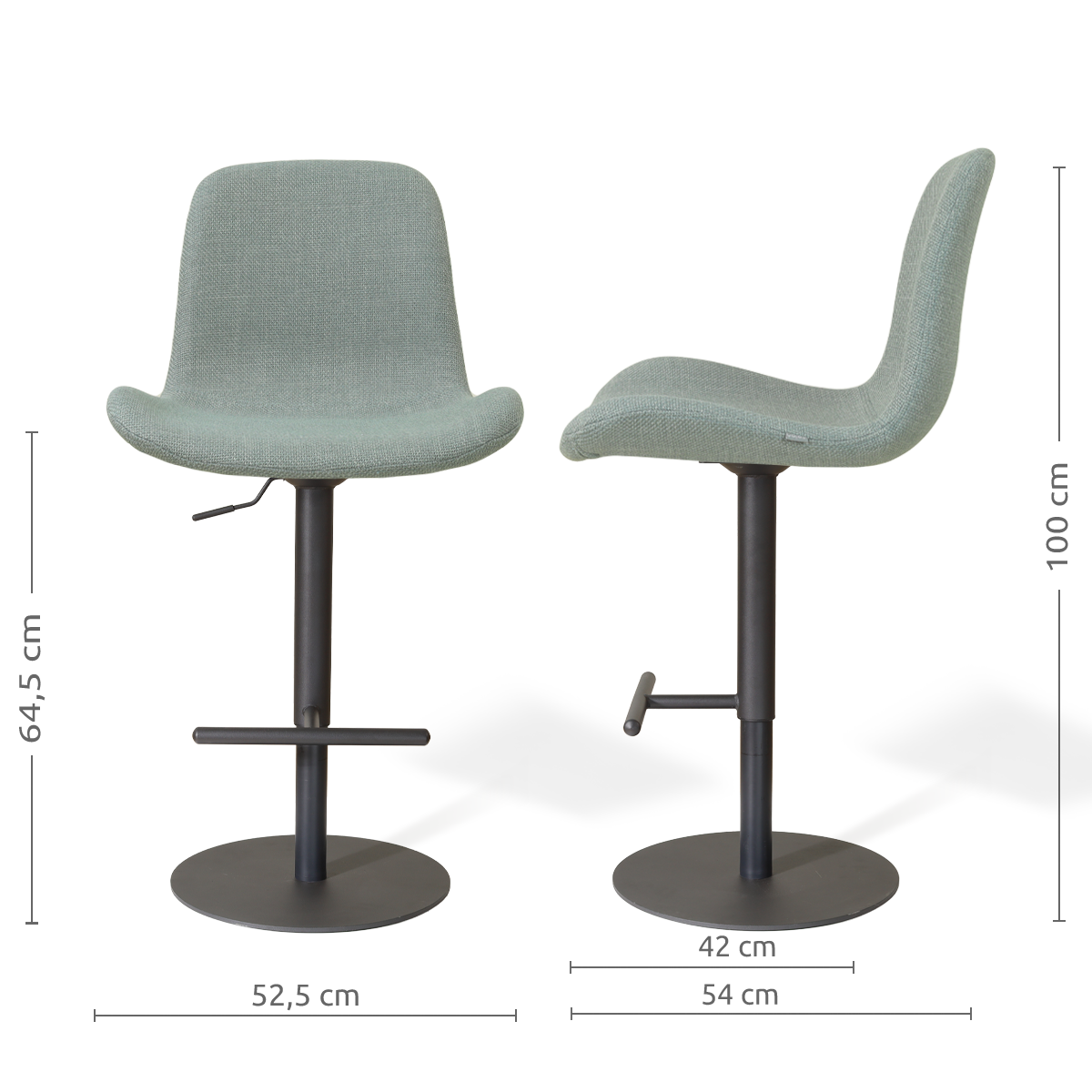 Niva-Fé draaibare tulp barkruk saliegroen - verstelbaar - mat zwart onderstel