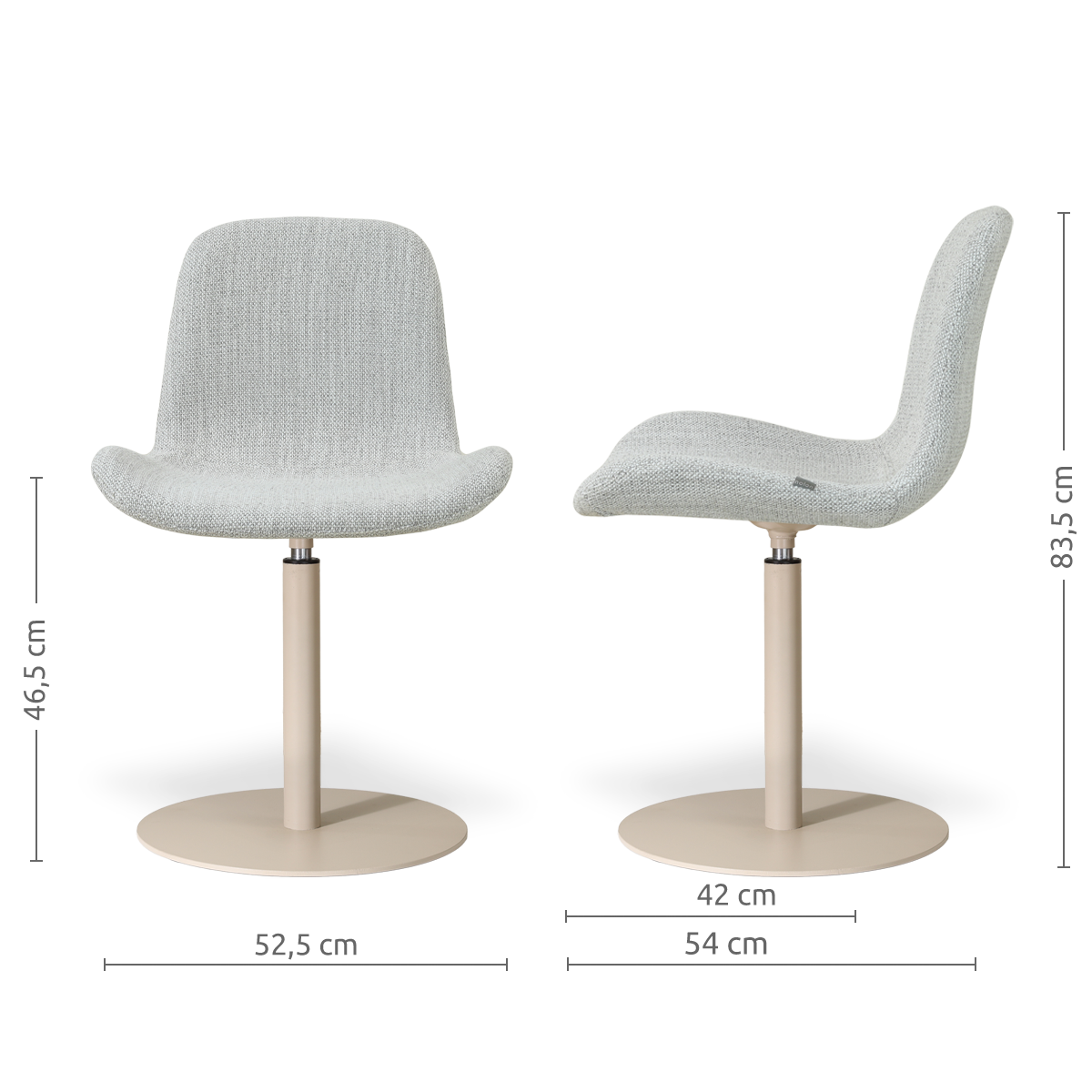 De Niva-Fé tulp eetkamerstoel beige heeft een rustige uitstraling en biedt een comfortabele plek aan tafel. De zitting zonder armleuningen zorgt voor een open en toegankelijke zit, terwijl het beige tulp onderstel de stoel een stabiele basis en een luchtige uitstraling geeft. Doordat de stoel op één centrale poot staat, blijft de ruimte onder de tafel rustig en overzichtelijk. De draaibare zitting maakt het makkelijk om aan te schuiven en weer op te staan. Dankzij het tijdloze ontwerp en de zachte vormen past deze stoel goed in een Scandinavisch, Japandi of modern interieur. Tips & advies