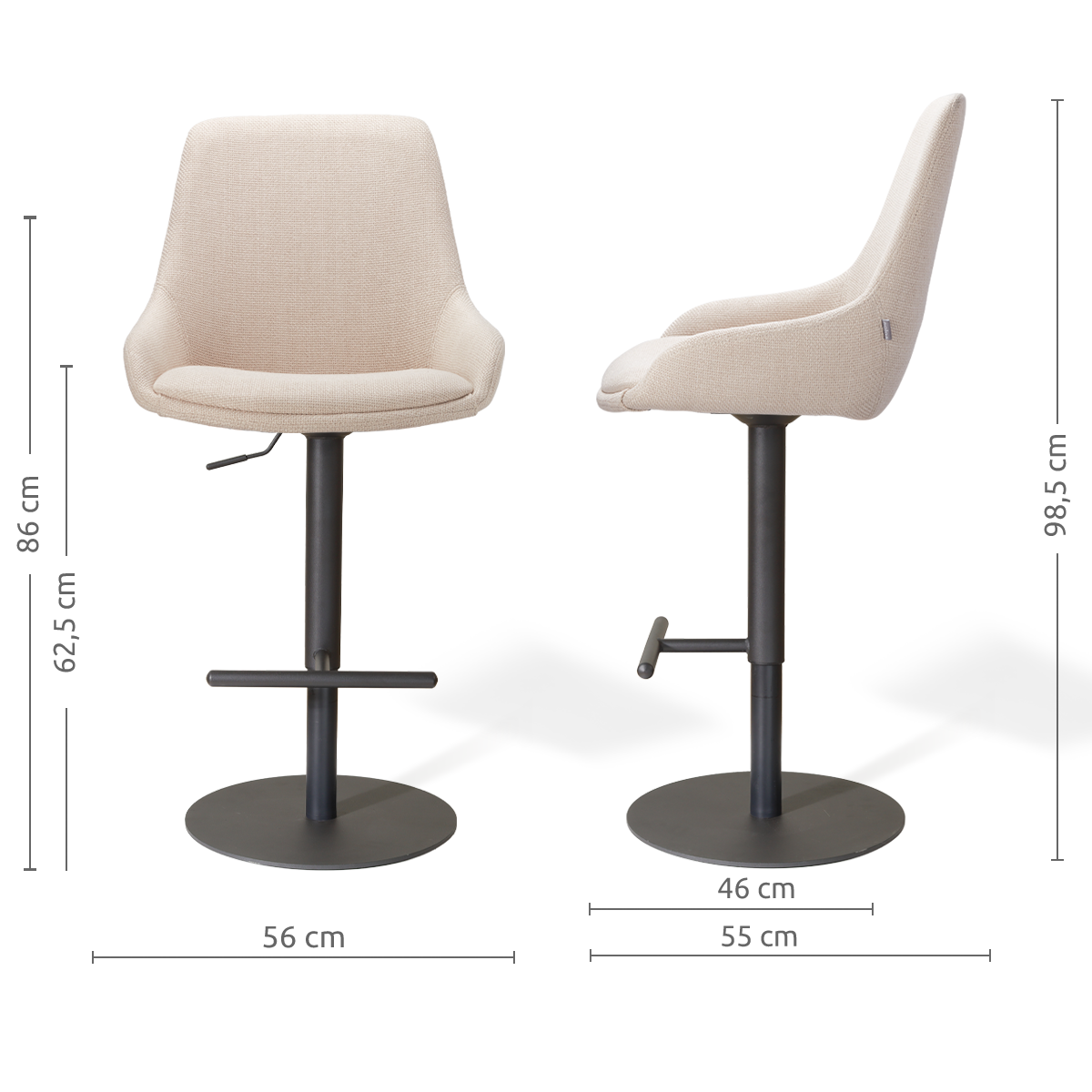 Niva-Isa draaibare tulp barkruk beige - verstelbaar - mat zwart onderstel