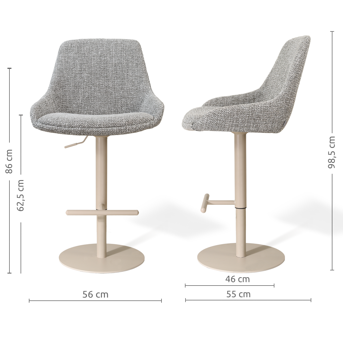 Niva-Isa draaibare tulp barkruk grijs blend - verstelbaar - beige onderstel