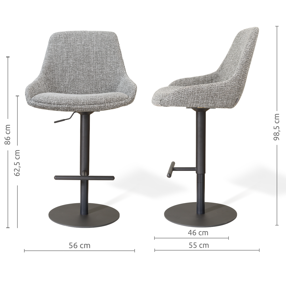 Niva-Isa draaibare tulp barkruk grijs blend - verstelbaar - mat zwart onderstel