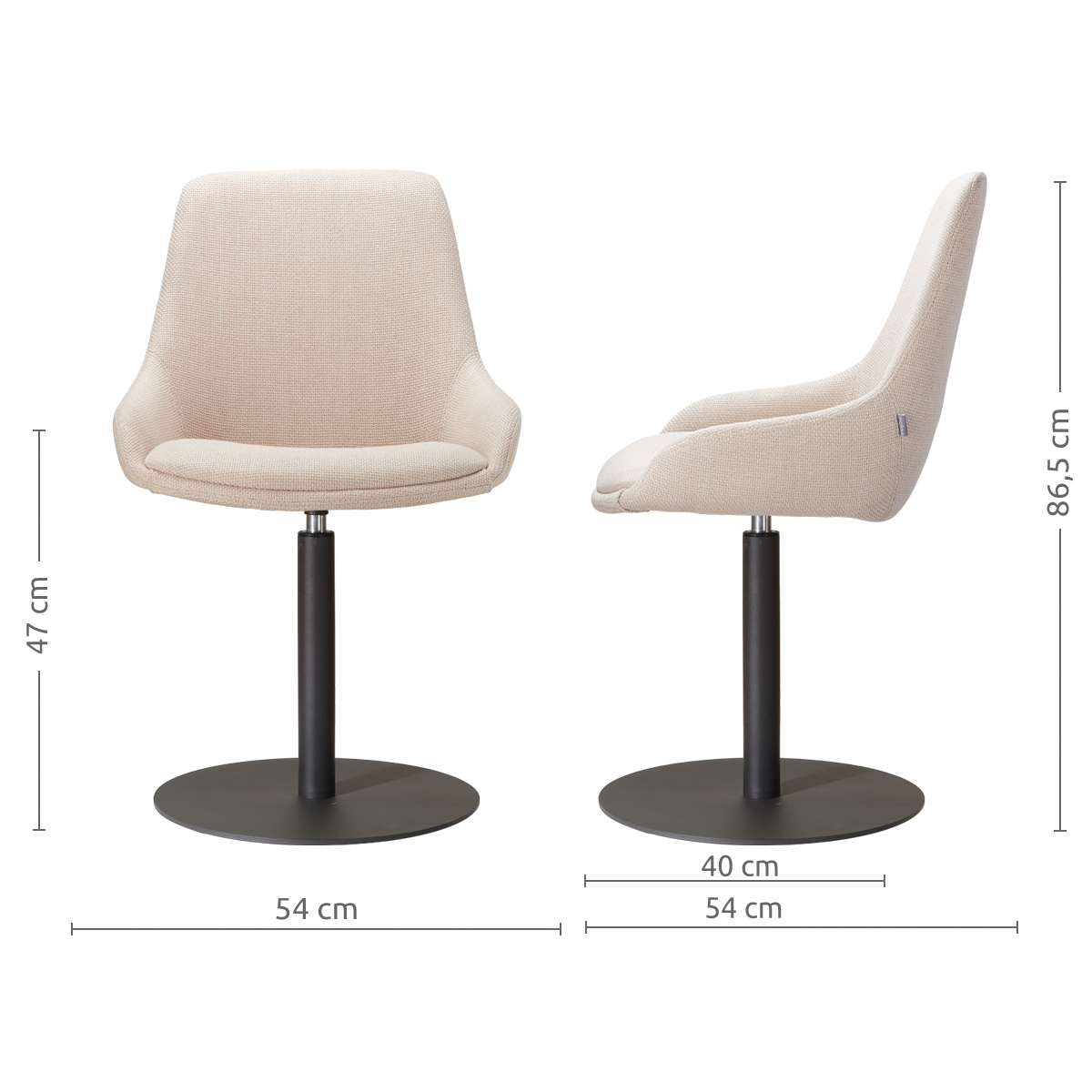 Niva-Isa draaibare tulp eetkamerstoel beige - mat zwart onderstel