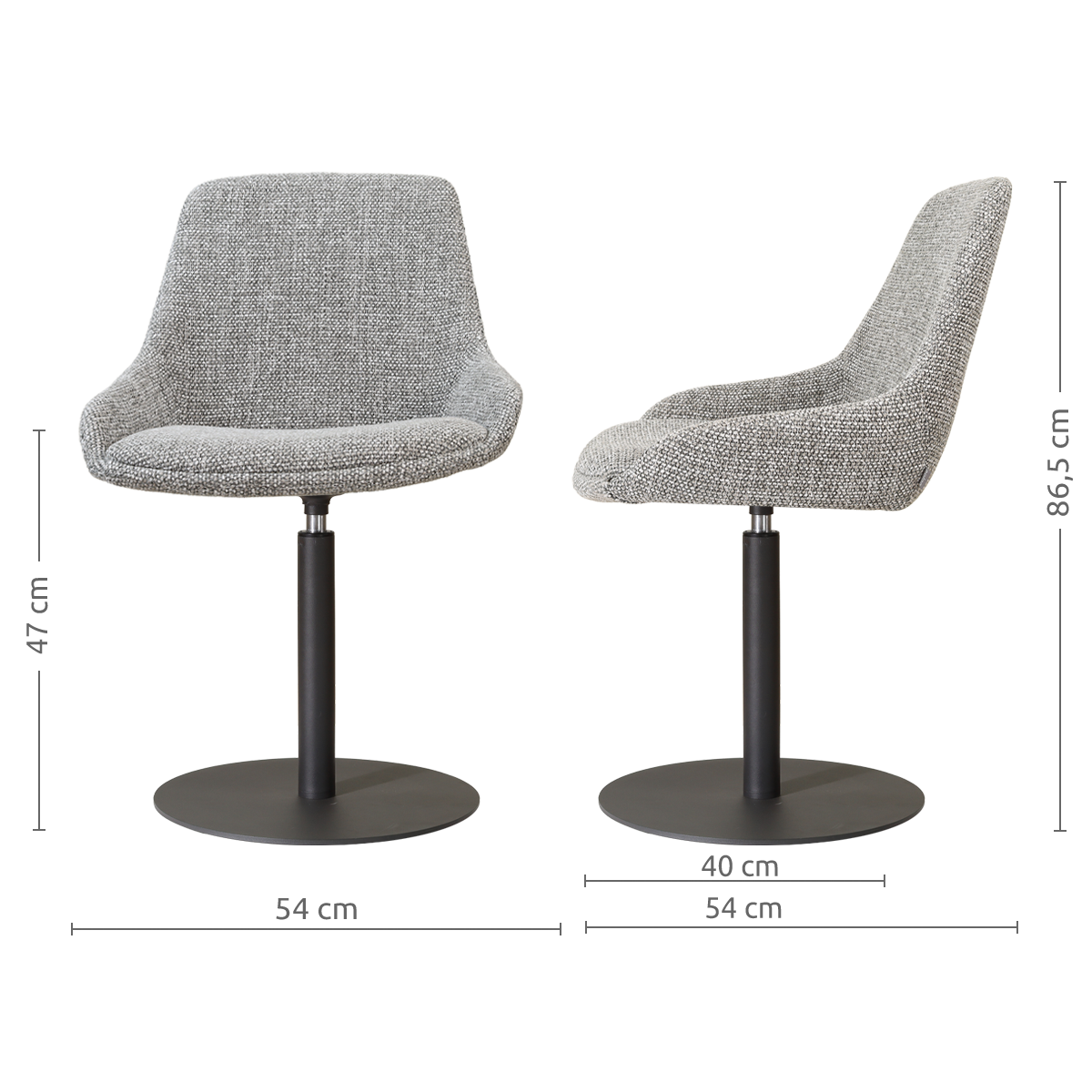 Niva-Isa draaibare tulp eetkamerstoel grijs blend - mat zwart onderstel