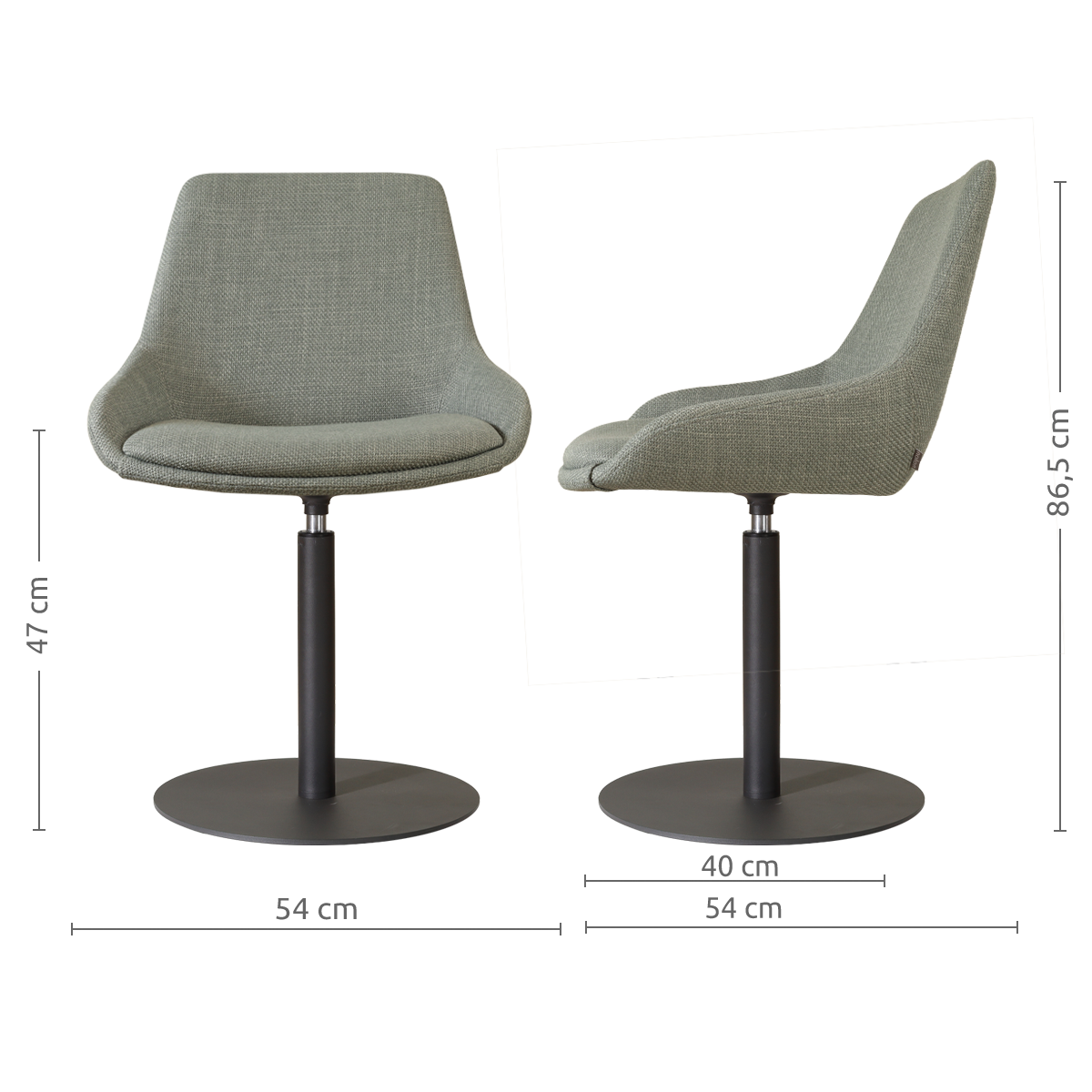 Niva-Isa draaibare tulp eetkamerstoel saliegroen - mat zwart onderstel