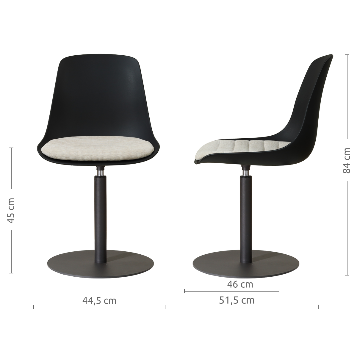 Niva-Liv draaibare tulp eetkamerstoel zwart met naturelbeige zitkussen - mat zwart onderstel