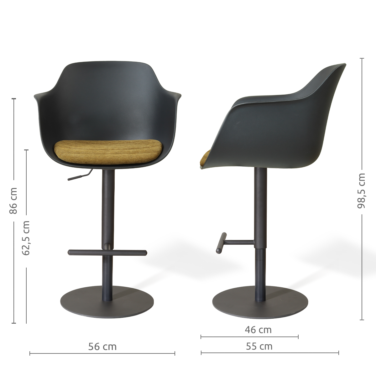 De Niva-Liz barkruk met mat zwart tulp onderstel brengt comfort en design samen aan je kookeiland. De zitting met armleuningen en vast zitkussen zorgt voor een comfortabele zit, terwijl het tulp onderstel stabiliteit en een ruimtelijk effect biedt. De draaifunctie en verstelbare zithoogte maken deze barkruk praktisch in gebruik. De combinatie van strakke lijnen en zachte materialen zorgt voor een moderne uitstraling. Tips & adviesMet een paar eenvoudige tips blijft je stoel mooi en prettig in gebruik: