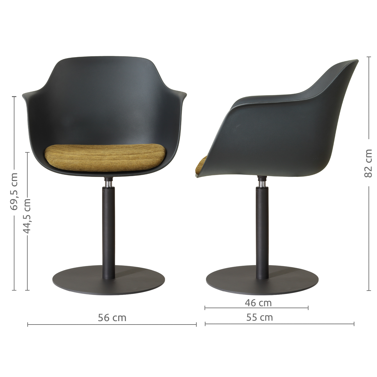 Niva-Liz draaibare tulp eetkamerstoel zwart met mosgroen zitkussen - mat zwart onderstel