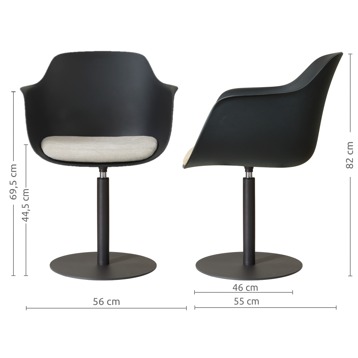 Niva-Liz draaibare tulp eetkamerstoel zwart met naturelbeige zitkussen - mat zwart onderstel