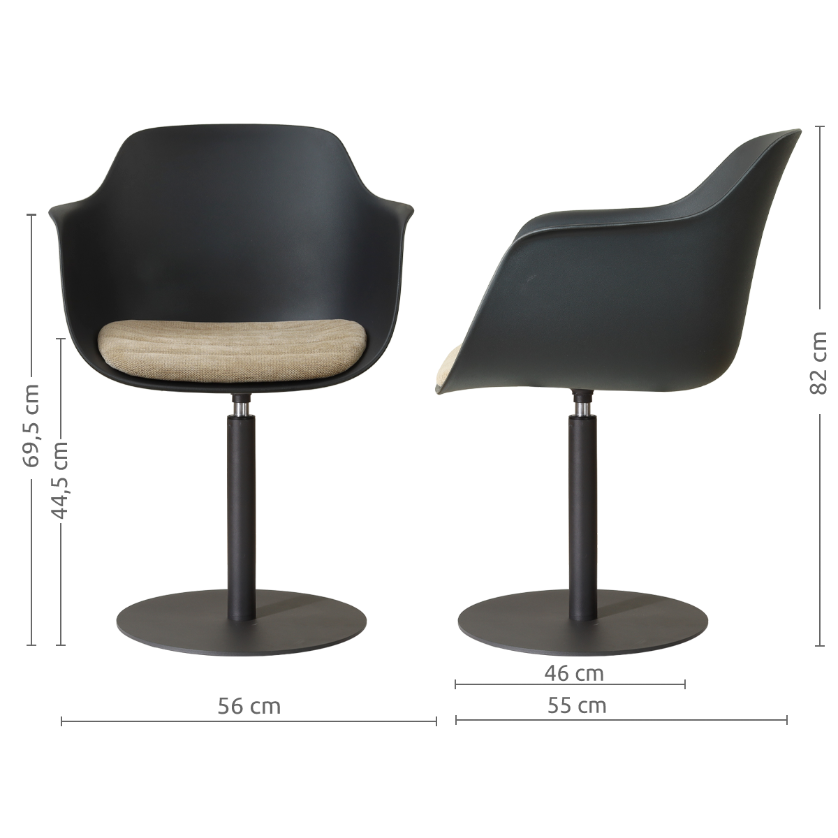 Niva-Liz draaibare tulp eetkamerstoel zwart met nougatbruin zitkussen - mat zwart onderstel