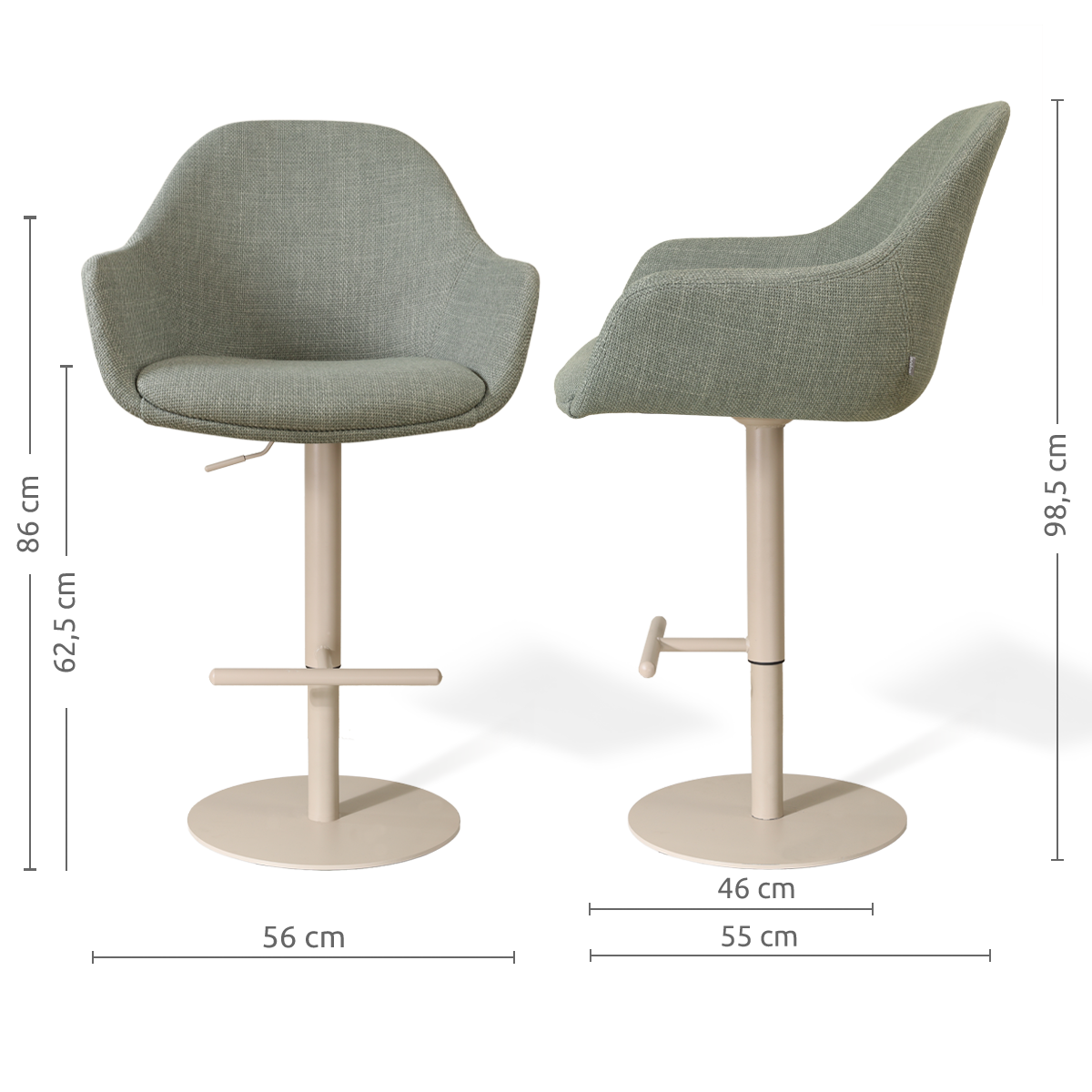 Niva-Mae draaibare tulp barkruk saliegroen - verstelbaar - beige onderstel