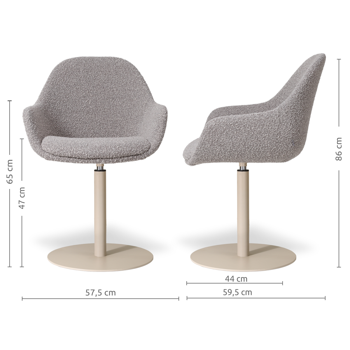 Niva-Mae draaibare tulp eetkamerstoel bouclé taupe - beige onderstel