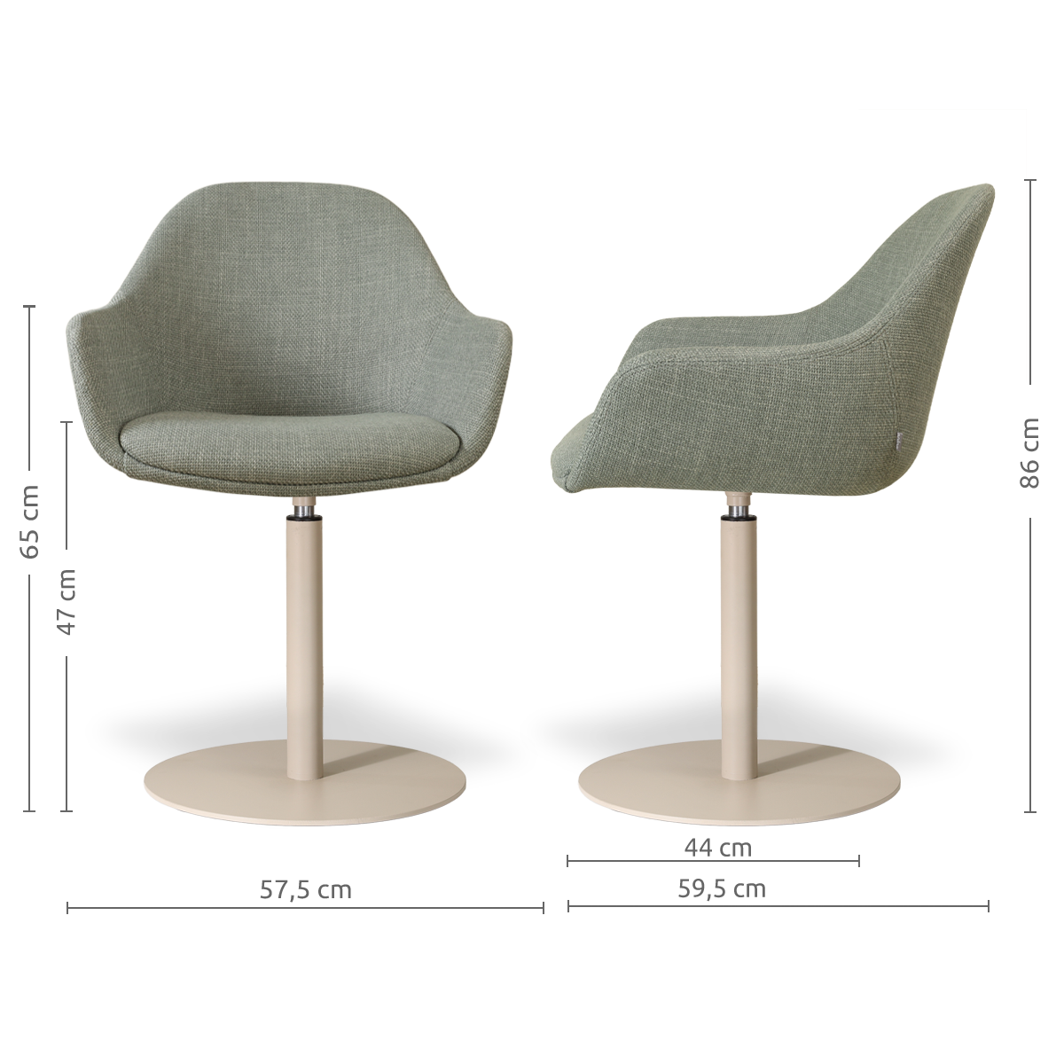 Niva-Mae draaibare tulp eetkamerstoel saliegroen - beige onderstel
