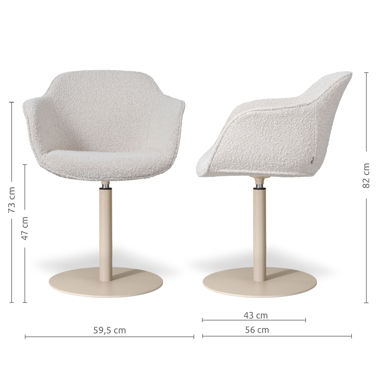 Niva-Mare draaibare tulp eetkamerstoel bouclé beige - beige onderstel