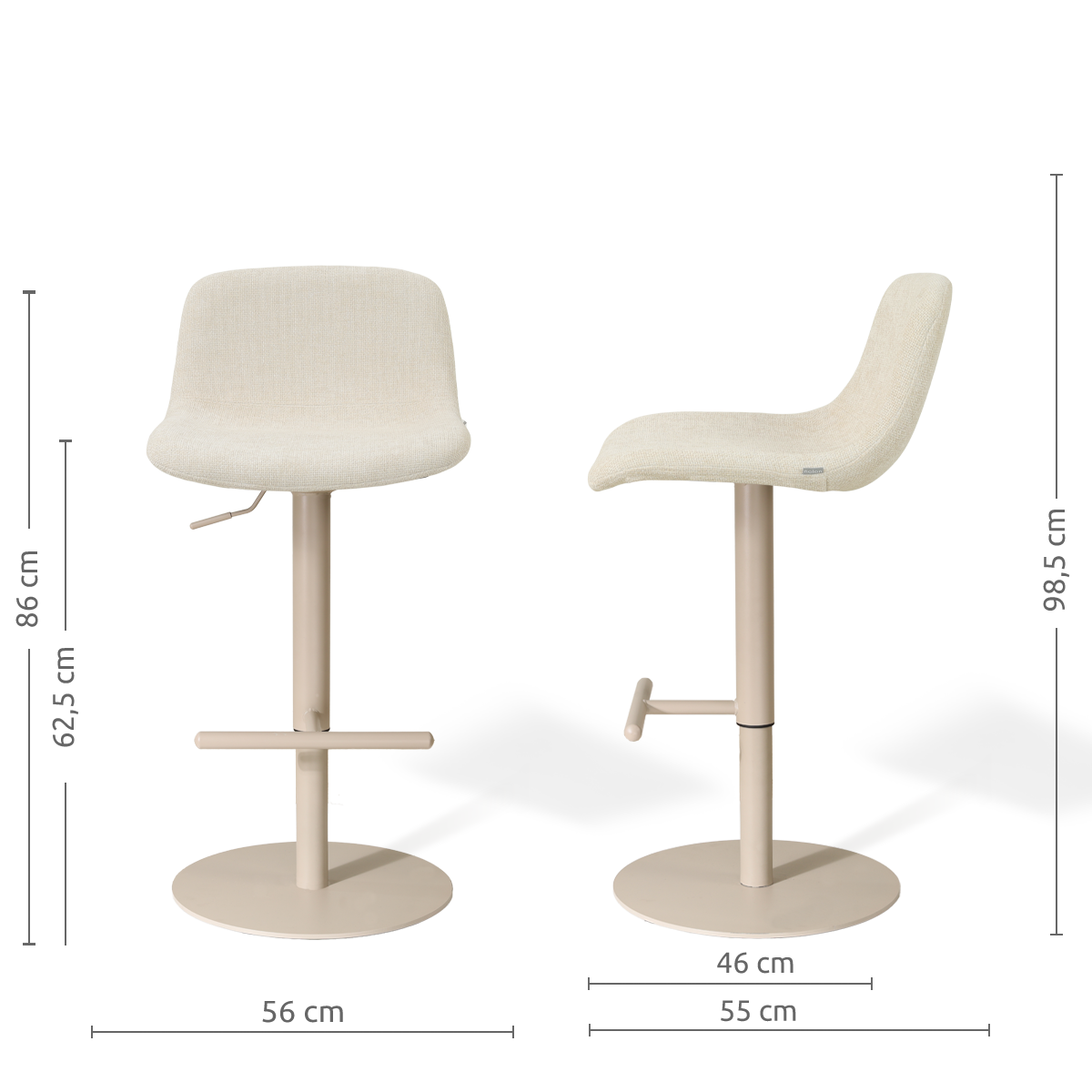 Niva-Mats draaibare tulp barkruk cottonbeige - verstelbaar - beige onderstel