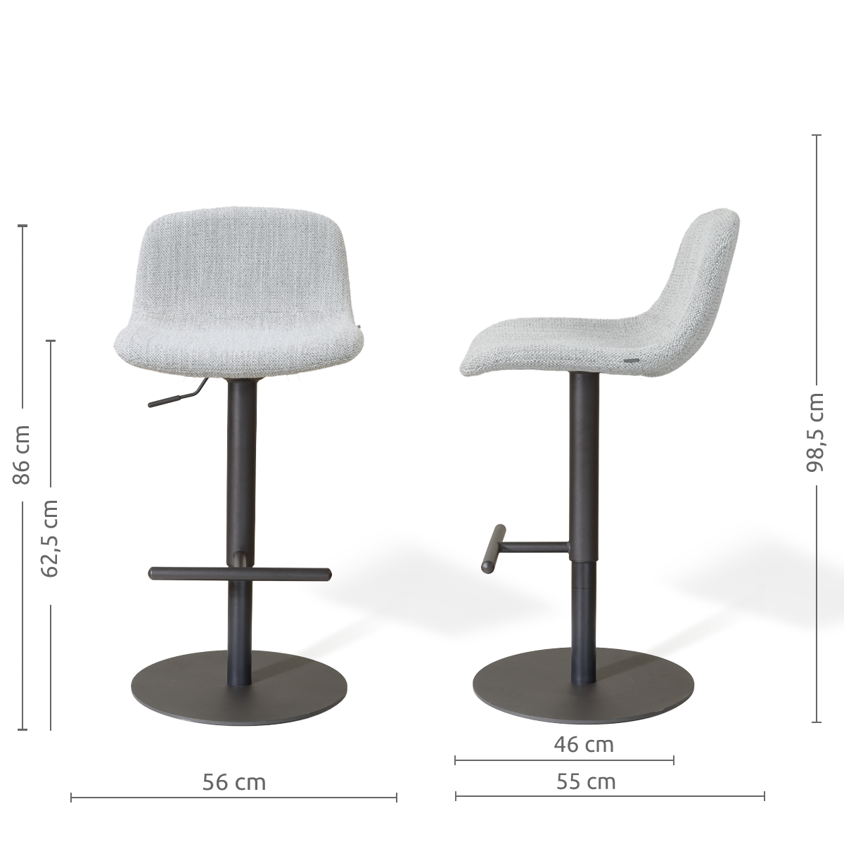 Niva-Mats draaibare tulp barkruk grijs melange - verstelbaar - mat zwart onderstel