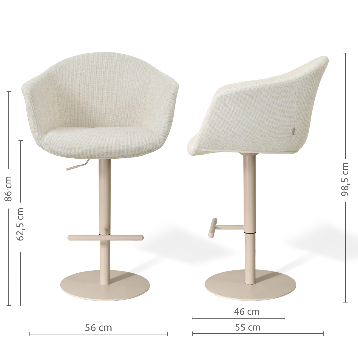 Niva-Otis draaibare tulp barkruk cottonbeige - verstelbaar - beige onderstel