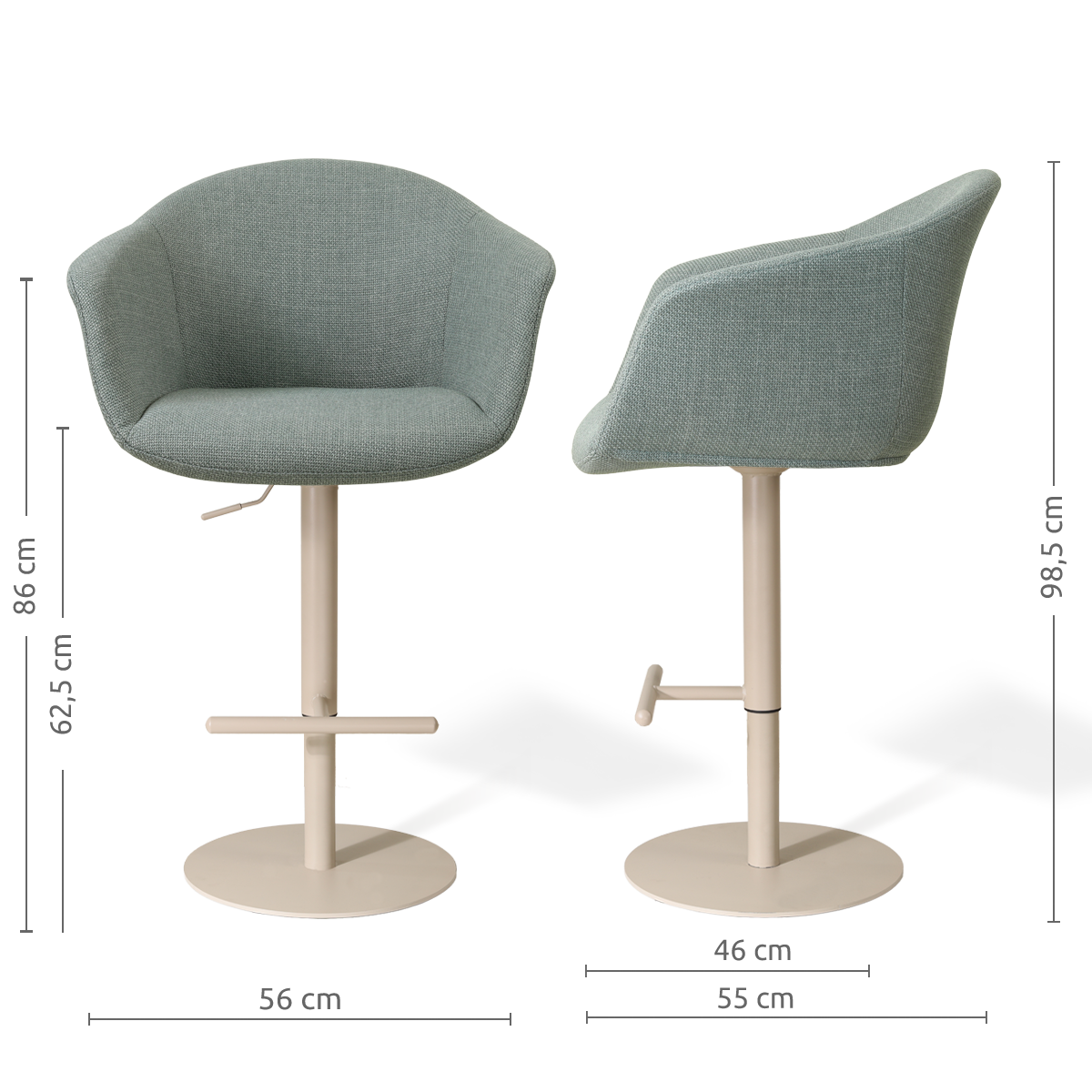 Niva-Otis draaibare tulp barkruk saliegroen - verstelbaar - beige onderstel