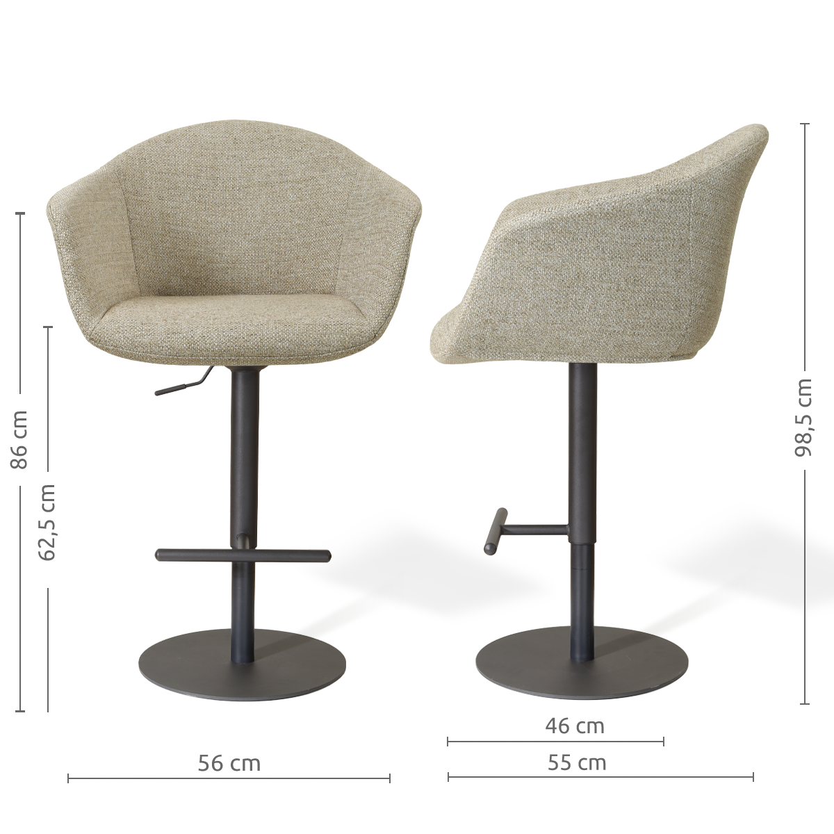 De Niva-Otis barkruk met mat zwart tulp onderstel valt op door zijn comfortabele zit en moderne uitstraling. De ruime zitting met armleuningen biedt goede ondersteuning, terwijl het tulp onderstel zorgt voor stabiliteit en een rustige basis. Dankzij de verstelbare zithoogte en draaifunctie zit je altijd comfortabel. De zachte vormen maken deze barkruk geschikt voor lange avonden aan het kookeiland. Tips & adviesMet een paar eenvoudige tips blijft je stoel mooi en prettig in gebruik: