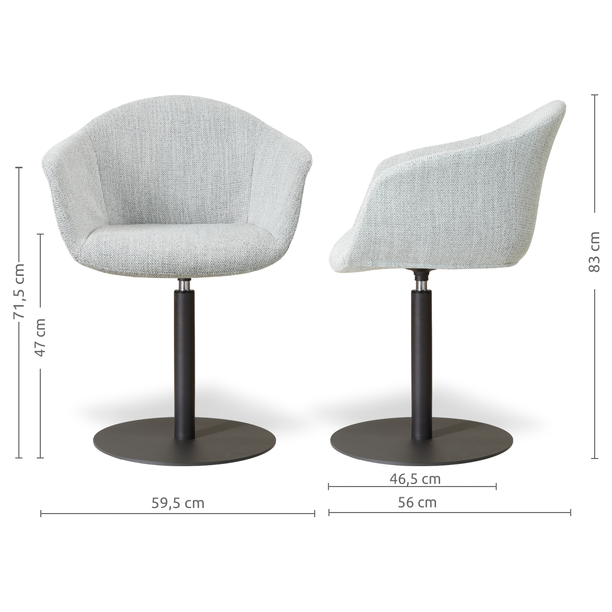 Niva-Otis draaibare tulp eetkamerstoel grijs melange - mat zwart onderstel