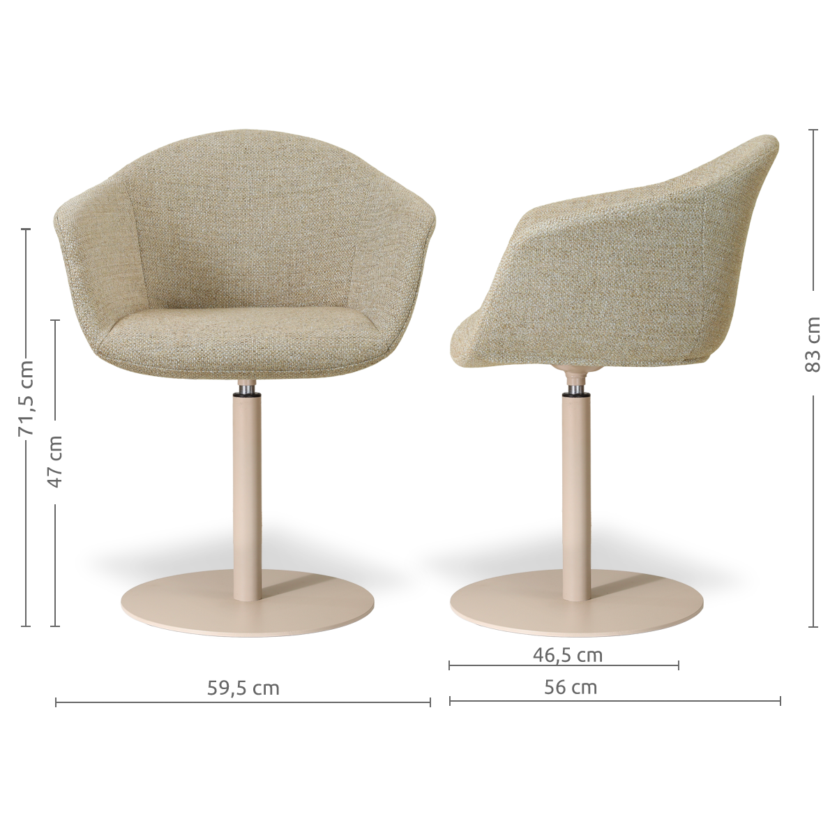 Niva-Otis draaibare tulp eetkamerstoel taupe melange - beige onderstel