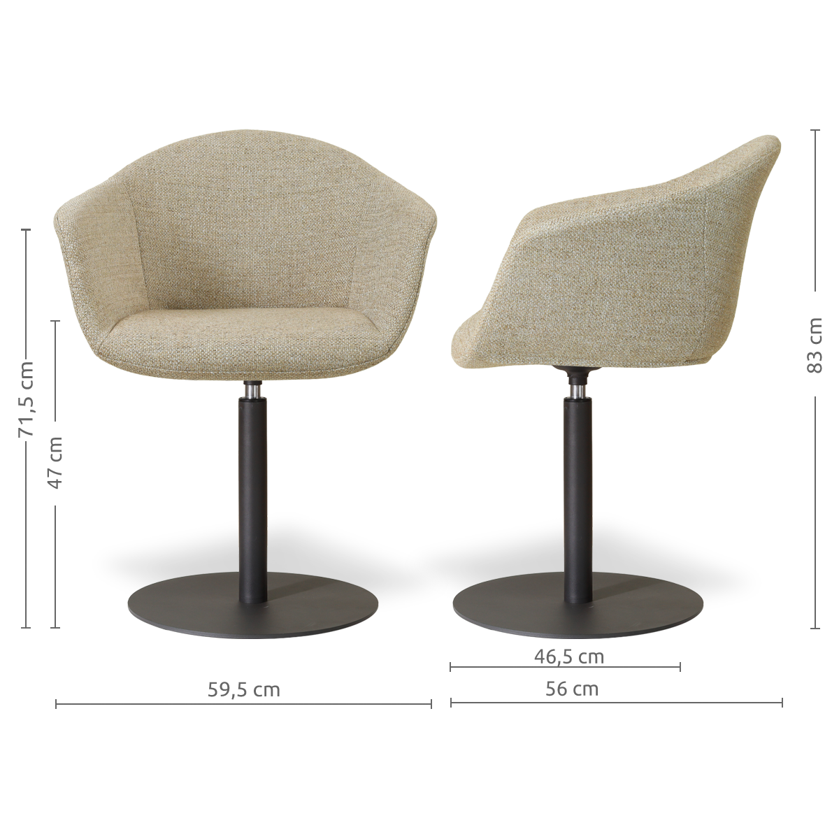 Niva-Otis draaibare tulp eetkamerstoel taupe melange - mat zwart onderstel