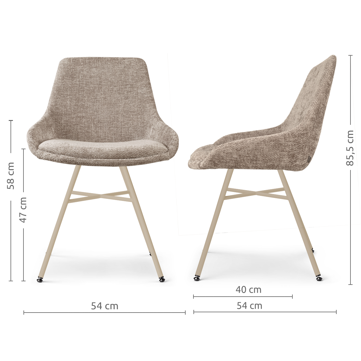 De Noa-Isa eetkamerstoel met beige onderstel van Nolon brengt comfort en een frisse uitstraling samen aan je eettafel. Het lichte ontwerp zorgt voor een rustige basis in je interieur en voelt tegelijkertijd uitnodigend aan. De zachte stoffen bekleding geeft de stoel een verfijnde en elegante look en draagt bij aan een warme, sfeervolle ruimte. De zitting met armleuningen is prettig gevormd en biedt goede ondersteuning, waardoor je ontspannen zit — ideaal voor lange diners of gezellige momenten aan tafel. Het witte metalen Noa onderstel vormt een stabiele en stevige basis en geeft de stoel een moderne, luchtige uitstraling. De kruisverbinding tussen de poten zorgt voor extra stevigheid, terwijl de verstelbare voetjes ervoor zorgen dat de stoel stabiel blijft staan op verschillende vloeren. Met zijn afgeronde vormen en tijdloze uitstraling past deze eetkamerstoel moeiteloos in een Scandinavisch of Japandi interieur. Een comfortabele en stijlvolle plek om samen te komen en te genieten van elk moment aan tafel. Tips & adviesMet een paar eenvoudige tips blijft je stoel mooi en prettig in gebruik: